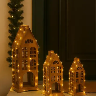 Immerse yourself in coziness: with the Amsterdam lantern house, you can create a warm and stylish atmosphere in your home in no time at all. The decorative metal house is the modern way to skilfully display candles or fairy lights and bathe your rooms in a cosy light.