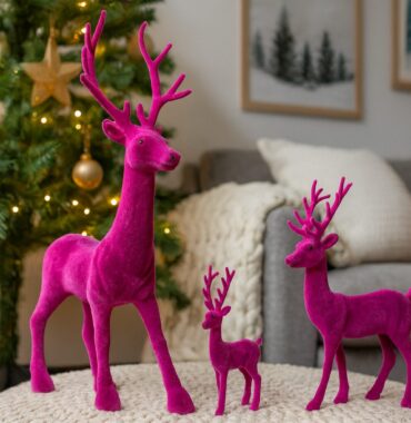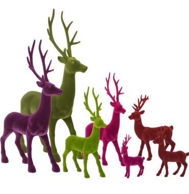 Beflockte Hirsche, Rentierfigur Weihnachten – Deko Hirsch stehend – Weihnachtsdeko 4 Farben