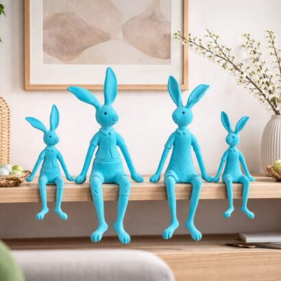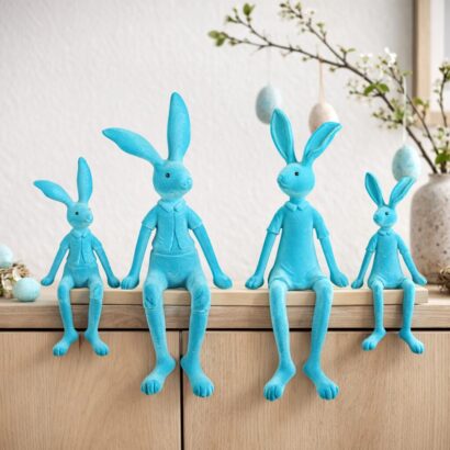 Dieser beflockte Osterhase als Kantenhocker bringt fröhliche Osterstimmung in dein Zuhause. Mit seinen langen Beinen sitzt er entspannt auf Regalen, Fensterbänken oder Kommoden und wird dort zum dekorativen Blickfang in der Frühlingszeit.