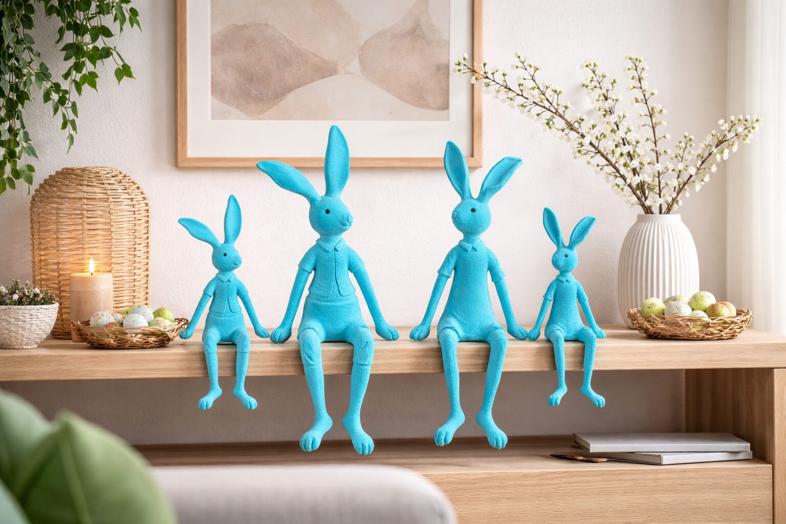 Beflockter Hase Blau, Osterhase Kantenhocker – Deko Hase Ostern
