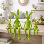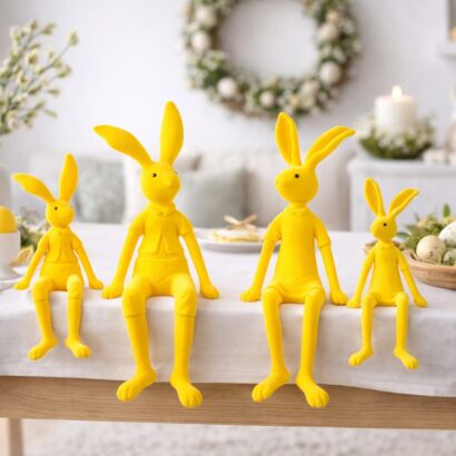 Dieser beflockte Osterhase als Kantenhocker bringt fröhliche Osterstimmung in dein Zuhause. Mit seinen langen Beinen sitzt er entspannt auf Regalen, Fensterbänken oder Kommoden und wird dort zum dekorativen Blickfang in der Frühlingszeit.