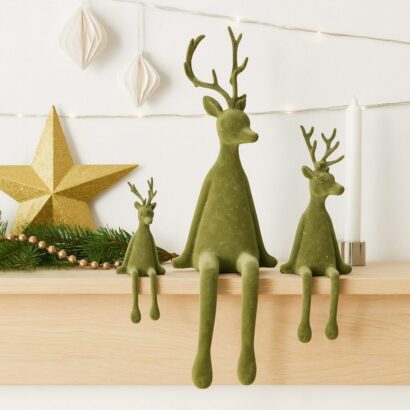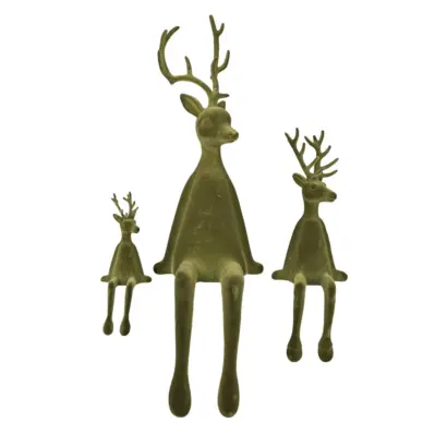 Beflockter Deko-Hirsche mit Samtoberfläche – in Grün, perfekt für die Weihnachtszeit