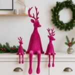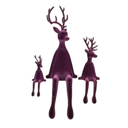 Diese stilvollen Kantenhocker-Hirsche mit beflockter Oberfläche sind das Highlight jeder festlichen Dekoration. Mit ihrem edlen, samtartigen Look und der festlichen Farbe Pflaume bringen sie Glanz und Eleganz in dein Zuhause.