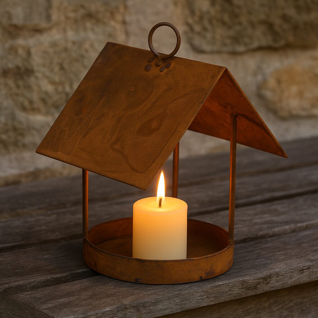 Windlicht Vogelhaus aus Rost – inkl. eine Flammschalen-Kerze