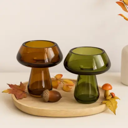 Glaspilz Kerzenhalter für Teelicht und Stabkerzen – Tischdeko Herbst – Doppelfunktion