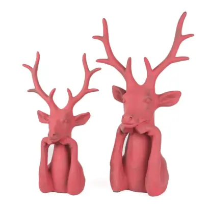 Hirsch Figur – Weihnachtsdeko modern – Deko Hirsch Büste – Rentier Skulptur Pink/Rot