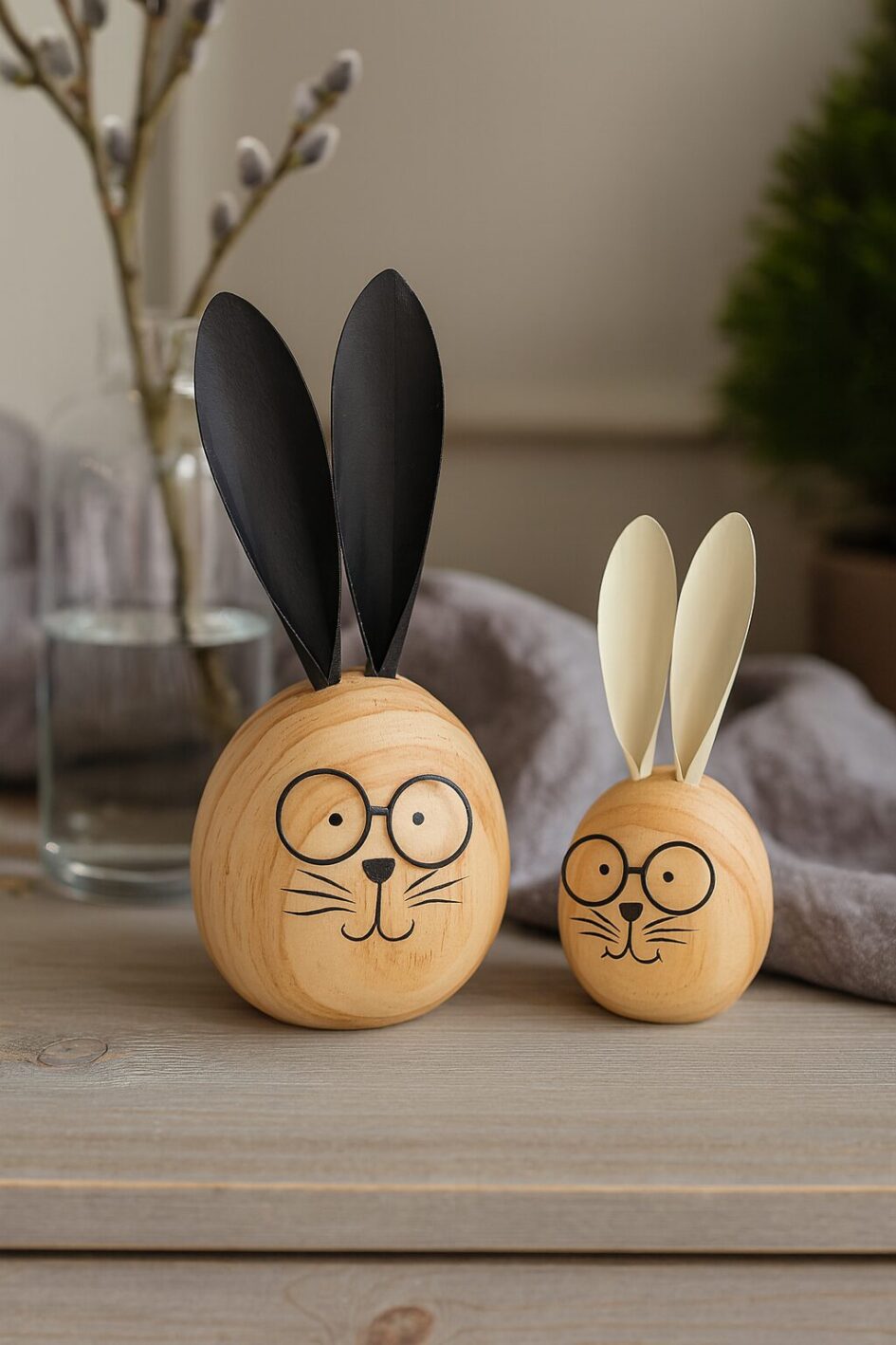 Natürliche Osterdeko mit Charakter – Hasenkopf aus Holz mit Brille