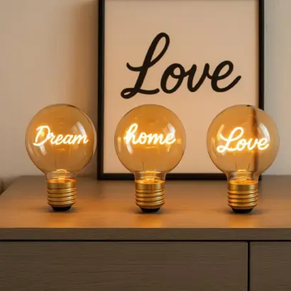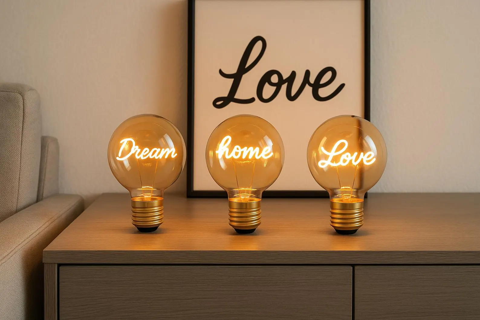 Stimmungsvolle LED-Glühbirnen mit Schriftzug – Dream, Home oder Love