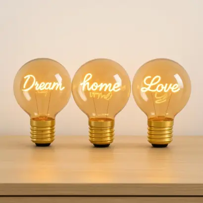 Diese dekorativen LED-Glühbirnen bringen warmes Licht und inspirierende Botschaften in Ihr Zuhause. Jede Glühbirne enthält einen stilvollen Schriftzug – wahlweise Dream, Home oder Love – und sorgt für eine gemütliche Atmosphäre. Perfekt als Geschenkidee, Tischdeko oder stimmungsvolles Wohnaccessoire für Weihnachten und das ganze Jahr.