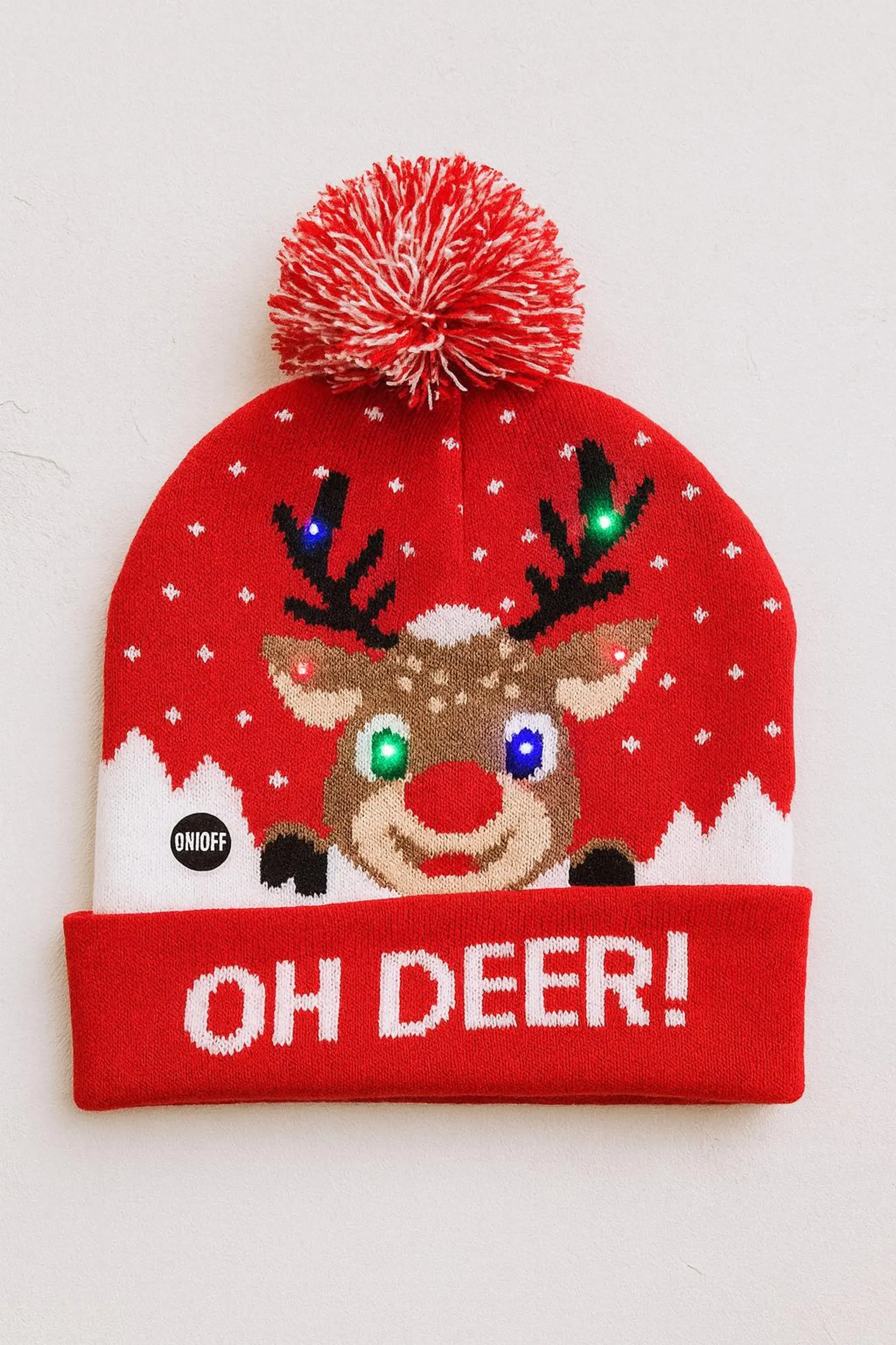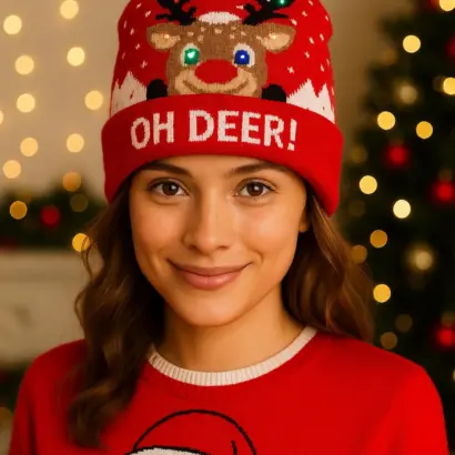 Lustige LED-Weihnachtsmütze mit Rentiermotiv – perfekt für festliche Stimmung