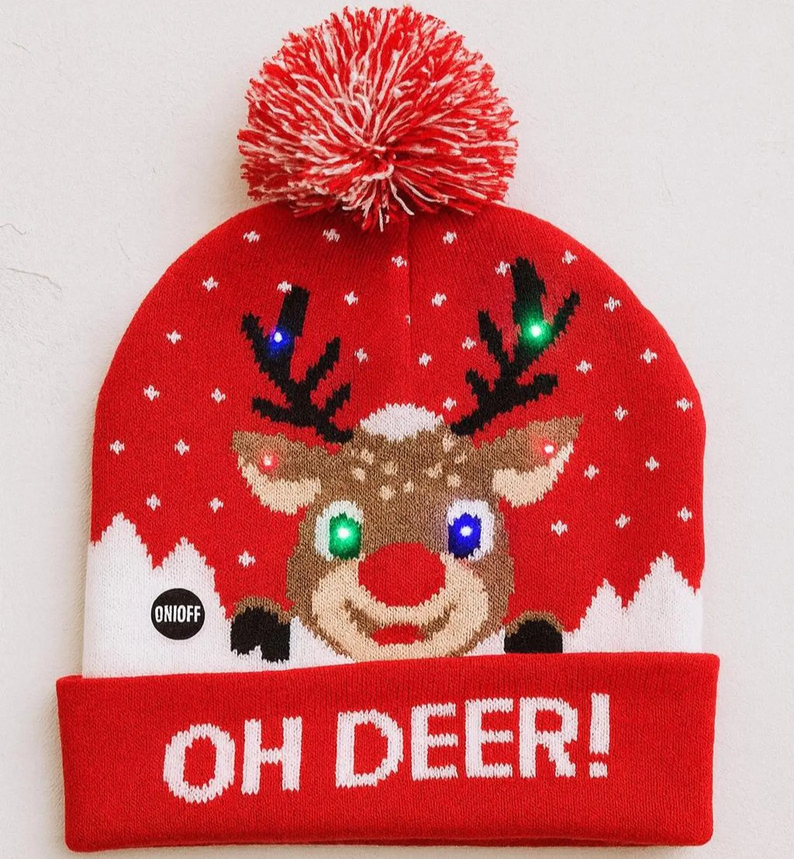LED Weihnachtsmütze, Wintermütze Weihnachten – Nikolausmütze mit Rentier – LED Licht