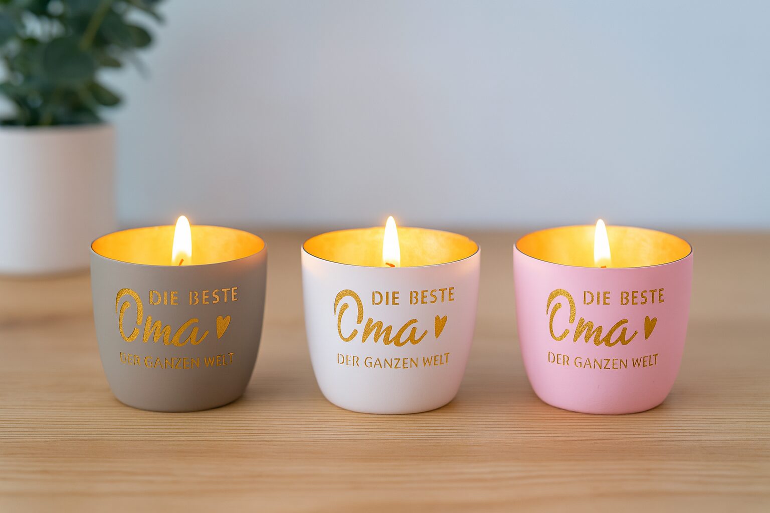 Metall-Windlicht Oma – Teelichthalter mit Gravur – Kerzenhalter personalisiert – 3 Farben