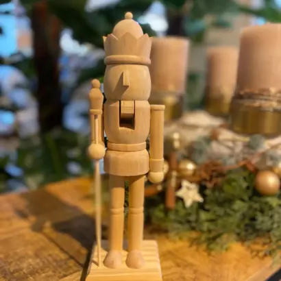 Erlebe die zauberhafte Weihnachtszeit mit unserem Nussknacker aus naturbelassenem Holz.