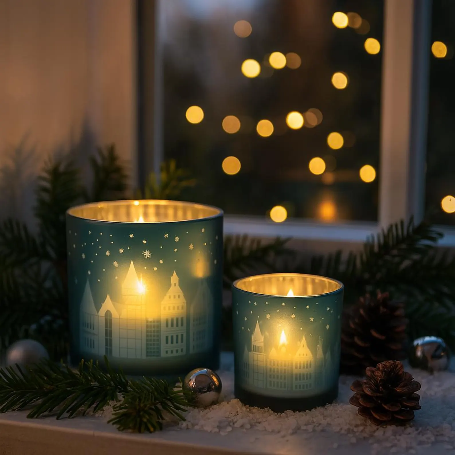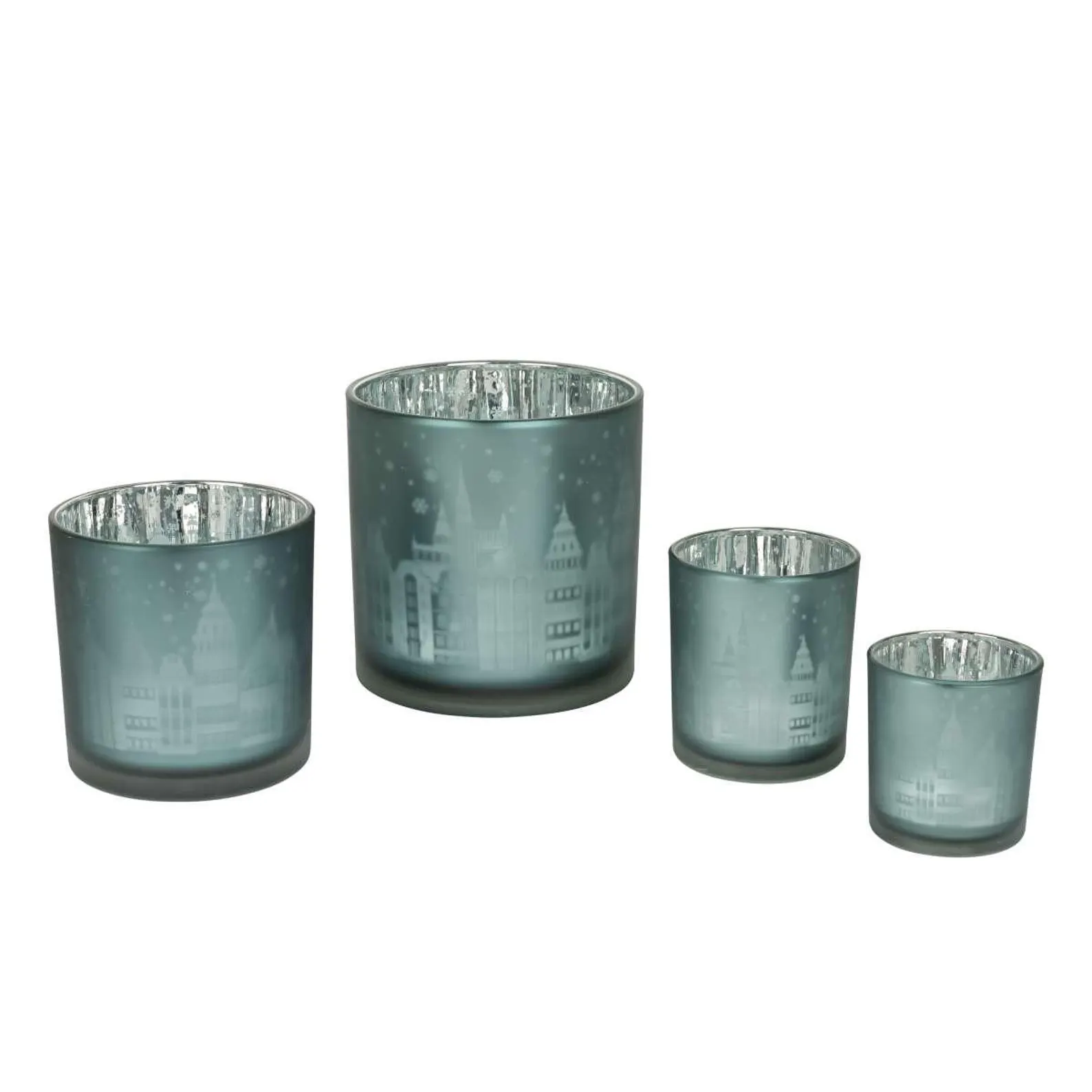 Stimmungsvolle Teelicht Cityworld in Eisblau – 4 Größen zur Auswahl – Perfekte Dekoration für gemütliche Winterabende