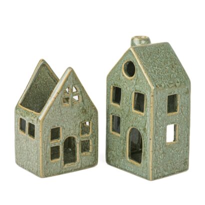 Teelichthaus, Haus für Teelichter – Lichthaus Weihnachten – Keramik Haus grün – 2 Größen