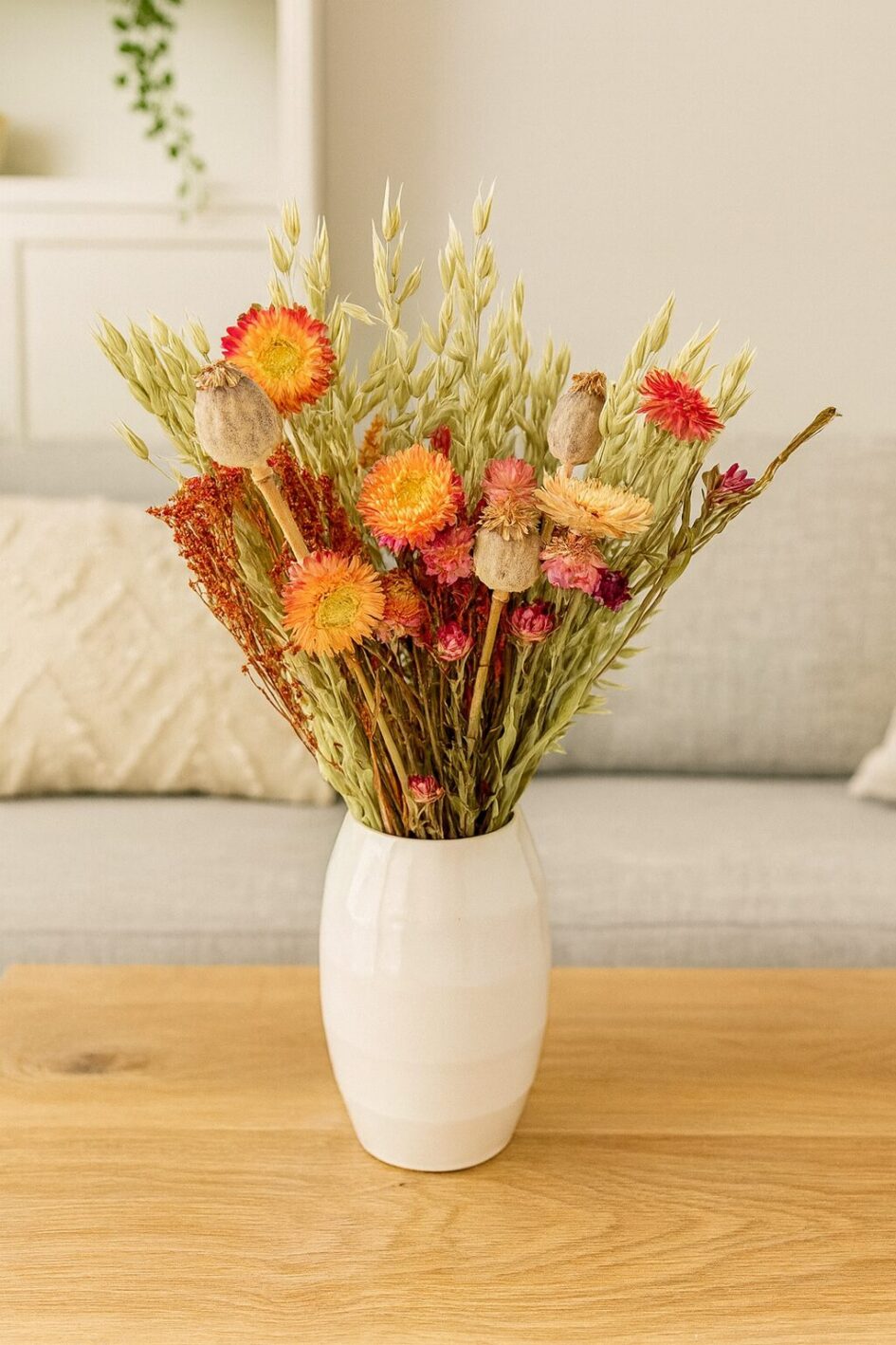 Unser Trockenblumen Mix ist ein wahrer Hingucker und verleiht jedem Raum eine warme und gemütliche Atmosphäre. Die Herbstlichen Farben und die natürliche Optik der getrockneten Blumen und Gräser sind zeitlos und passen zu jedem Einrichtungsstil.