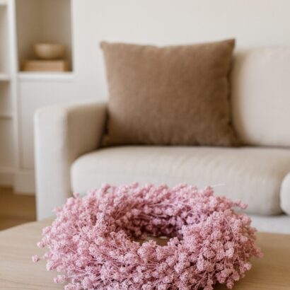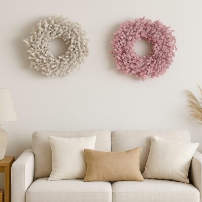 Natürlicher Leinenkraut-Kranz – Boho-Deko in Weiß oder Rosa