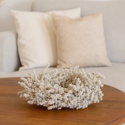 Erhältlich in zwei Farbvarianten – Weiß oder Rosa – passt er ideal in moderne, skandinavische oder Boho-Einrichtungen. Das zarte Leinenkraut wirkt luftig und elegant und verleiht jedem Raum eine ruhige, natürliche Atmosphäre.