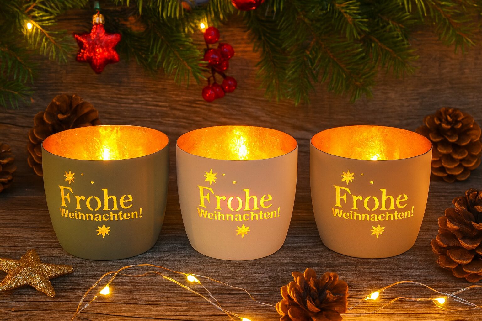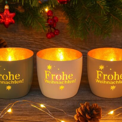 Ein Licht, das Freude schenkt – Windlicht mit Botschaft „Frohe Weihnachten“