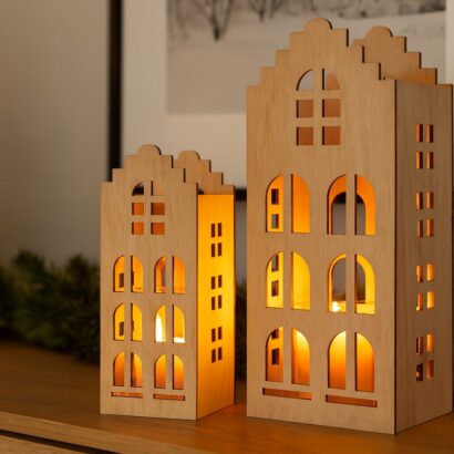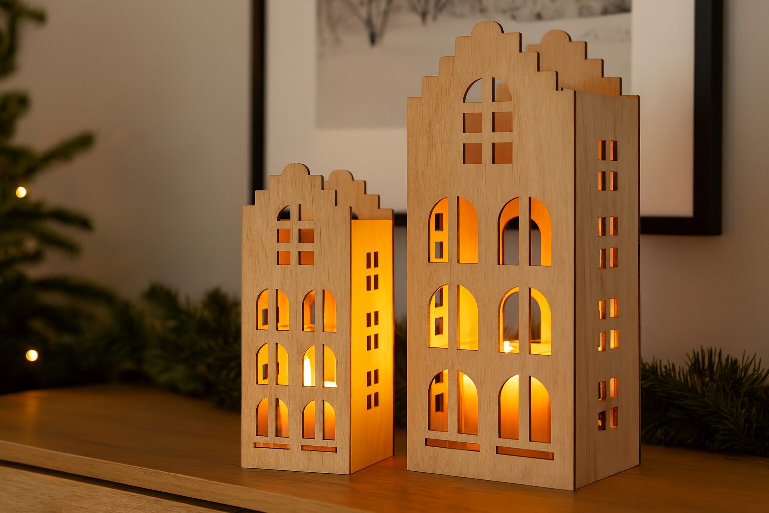 Dieses charmante Windlicht-Haus aus Holz bringt Gemütlichkeit und Stil in dein Zuhause. Die rustikale Optik und das warme Licht machen es zu einem dekorativen Highlight für jede Jahreszeit.