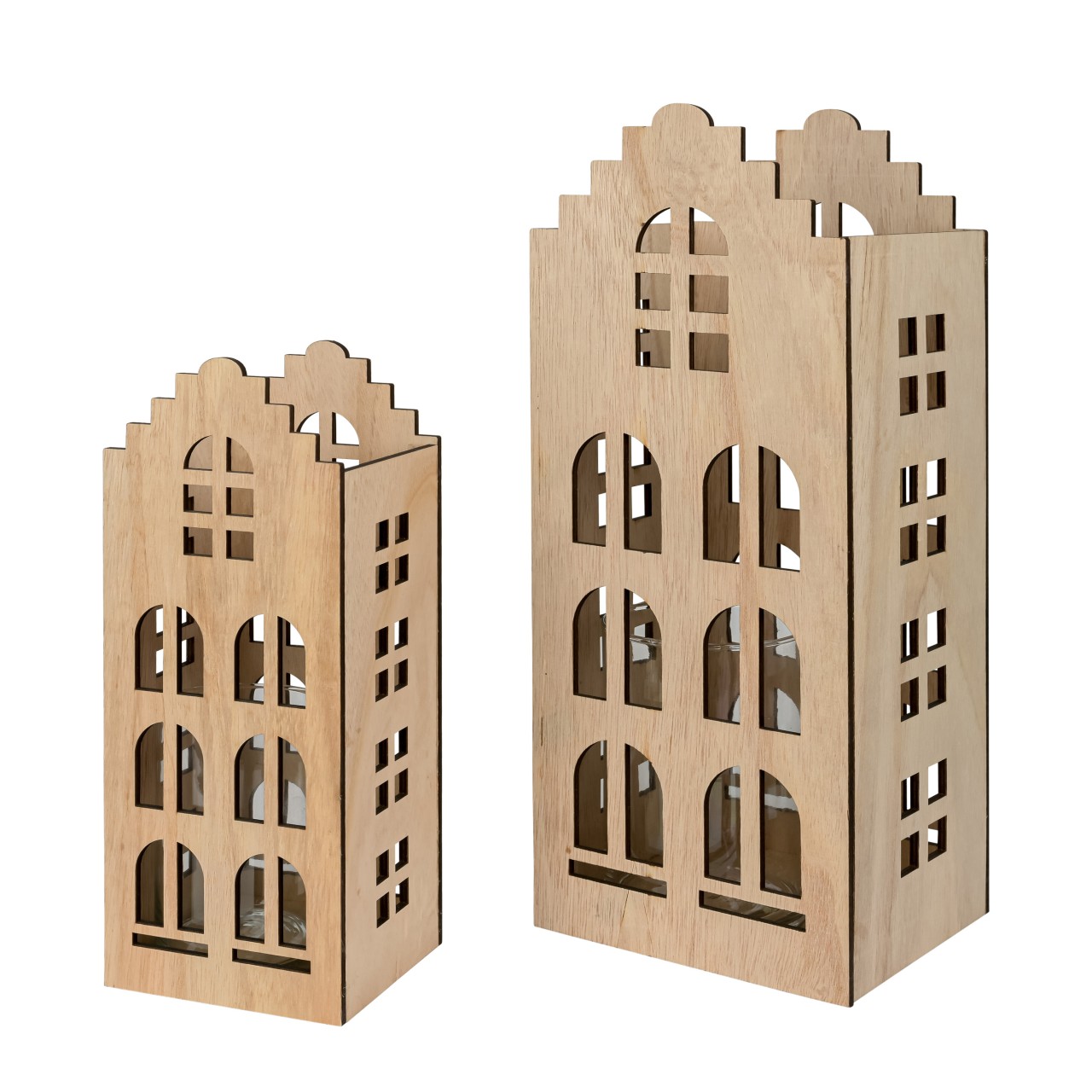 Windlichthaus aus Holz – Lichterhaus – Teelichthaus – Deko Haus Holz – Herbstdeko – 2 Größen