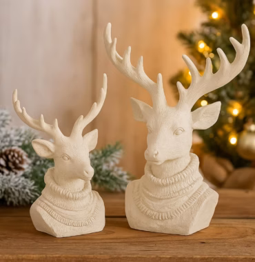 Deko Hirsch-Büste – Rentier Statue cremefarben – 2 Größen