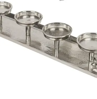 Advent Kerzenhalter Metall für 4 Stumpenkerzen – Adventskranz Tablett Silber